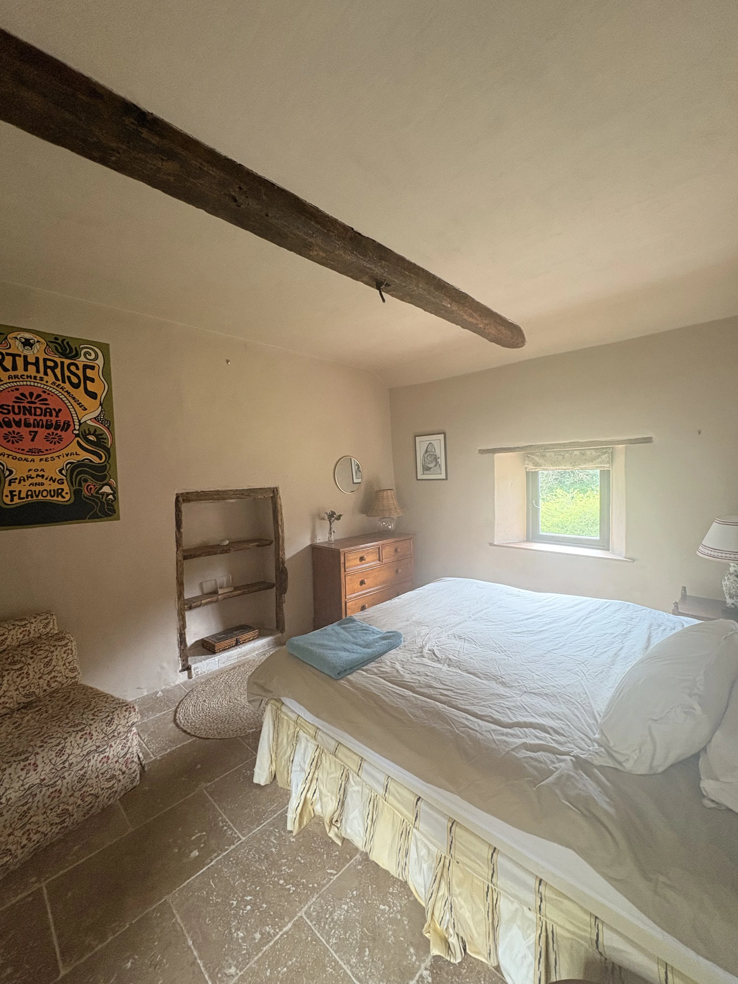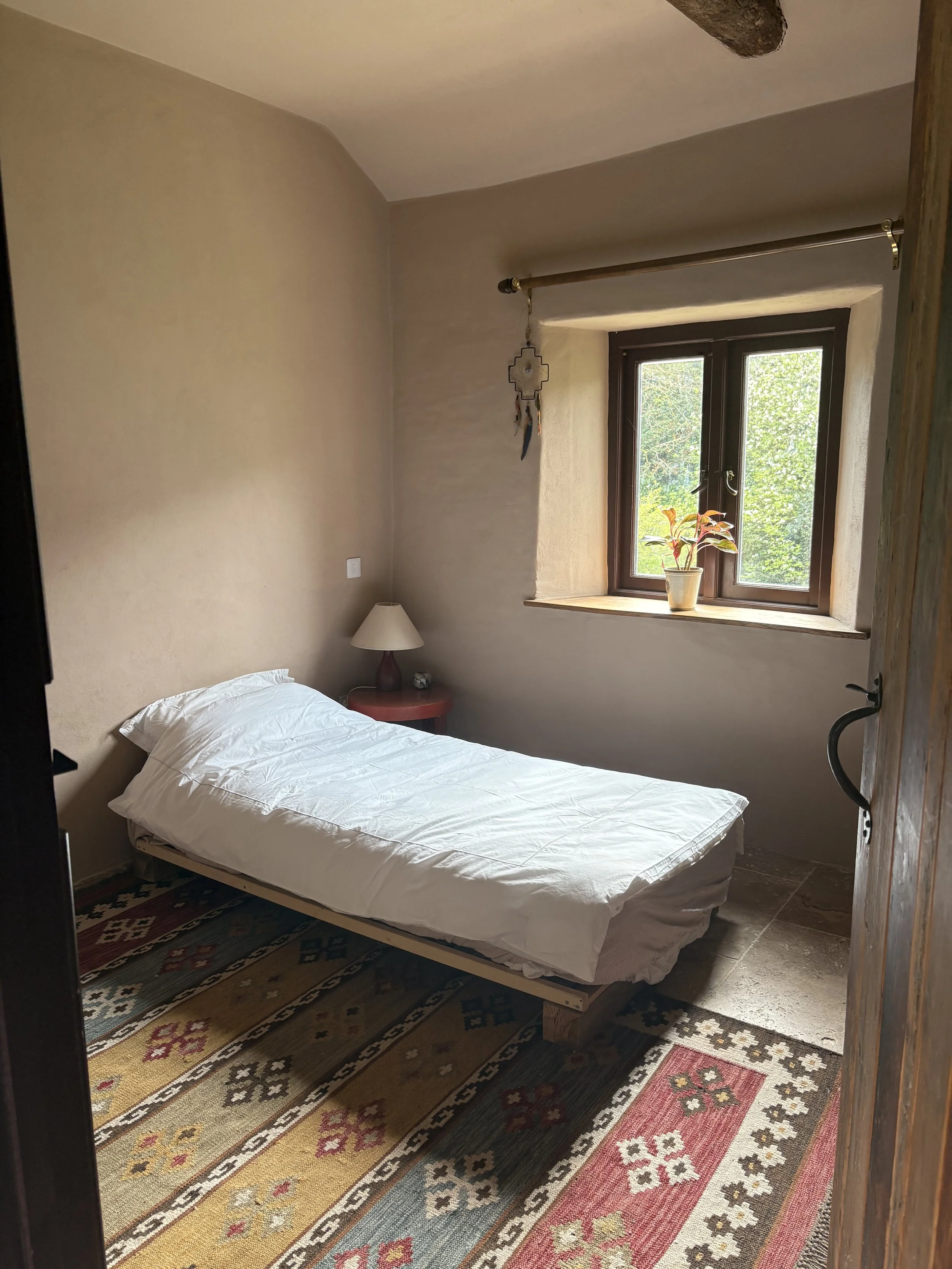 There is one large super-king bedroom, large single bedroom and bathroom; with roll top bath and shower. The cottage also has access to a private laundry room