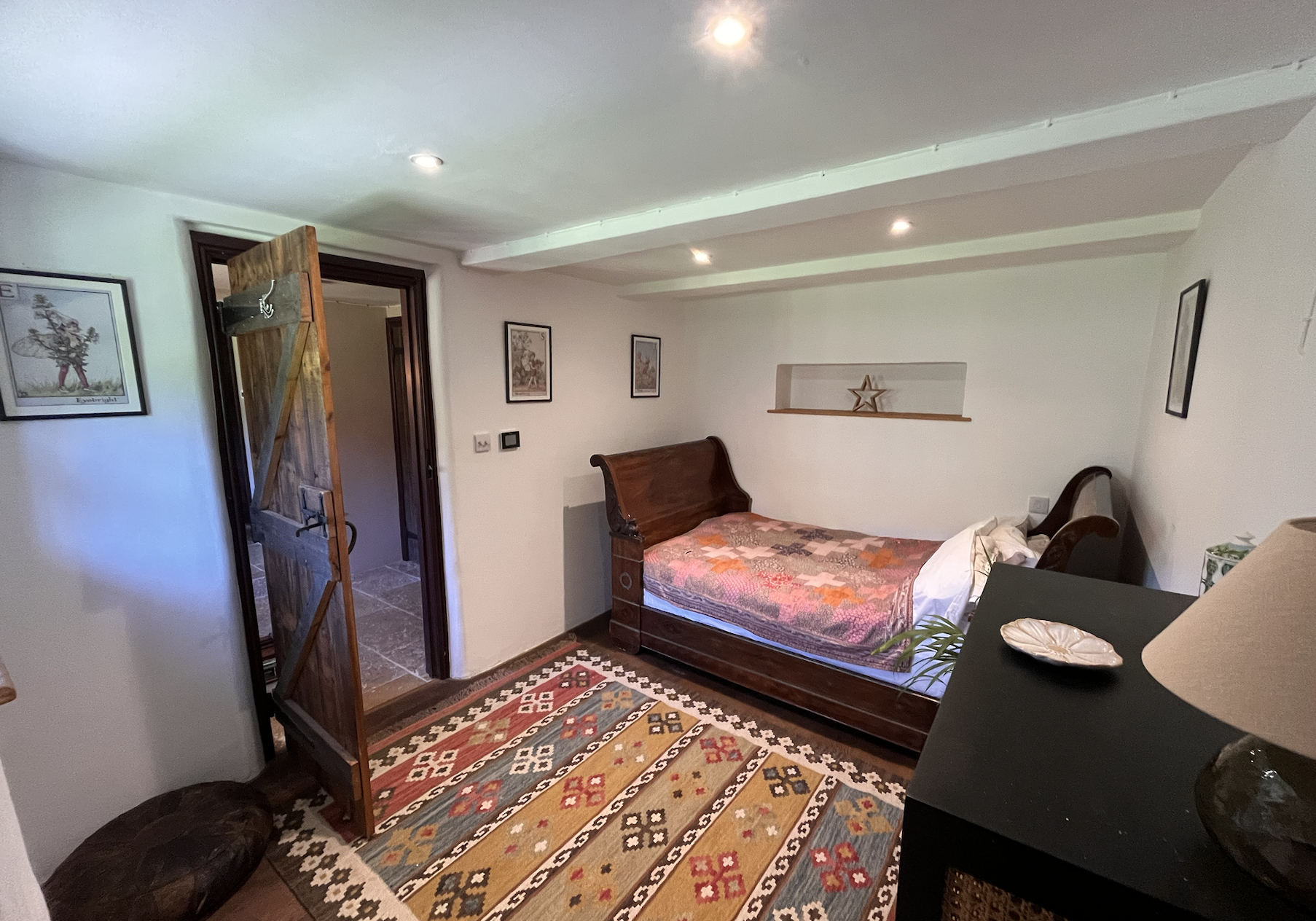 The Blackbird Cottage is split between two floors. On the ground floor, there is a second private entrance into a hallway off which there a two double bedrooms and a high-end shower room.